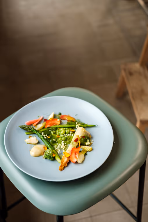 🥬 La rotation qui sauve (Plat bistronomique) — Légumes verts de croissance rapide, mayonnaise vegan à la rhubarbe, pickles. Une agriculture qui s'adapte au rythme des sols, pas l'inverse.